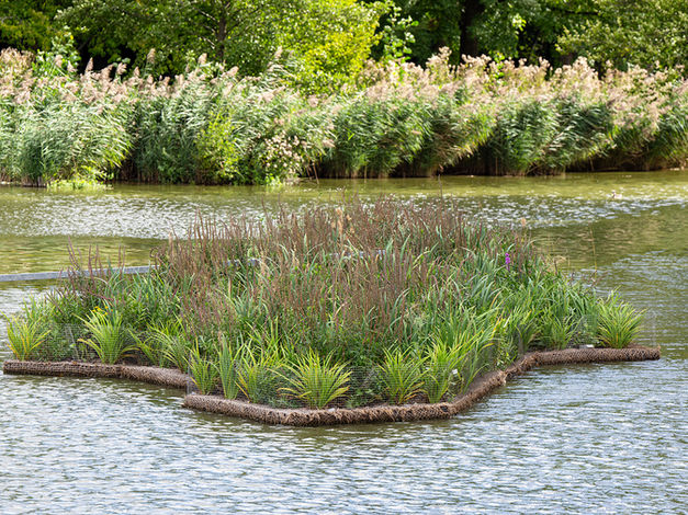 Anfang März 2024 hatten wir die Ehre, für die Stadt Berlin eine Brutinsel auf dem Fennpfuhl im Bezirk Lichtenberg zu installieren. Die Brutinsel ist für zwei Trauerschwäne gedacht, die dort, geschützt durch Schilf und Blutweiderich in der Mitte der Insel, auf Bodendeckern brüten können.